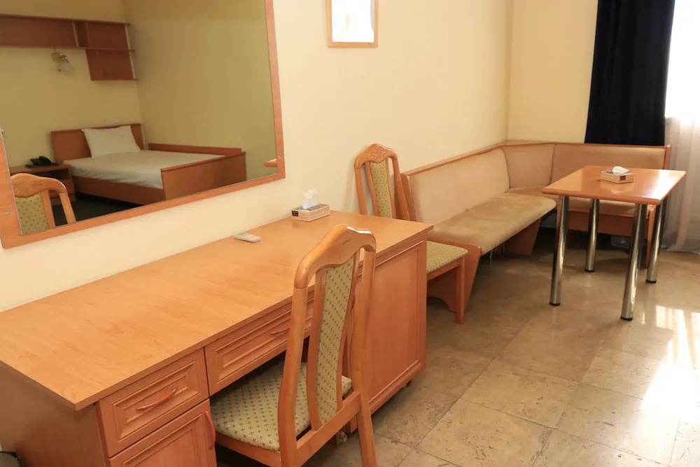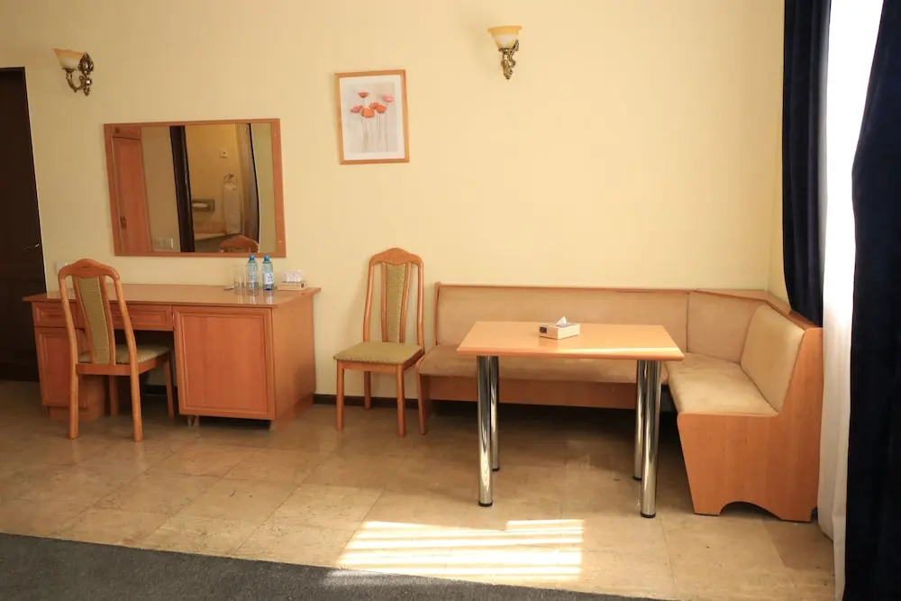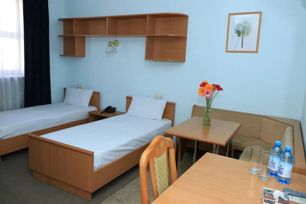 Прокуренные и грязноватые номера, давно ждущие ремонта, плохая сантехника, ржавая ванна. Завтрак включён, но менеджер просто забыл сказать повару, что заселились гости! В общем, не рекомендую, в Ереване есть много мест значительно лучше.