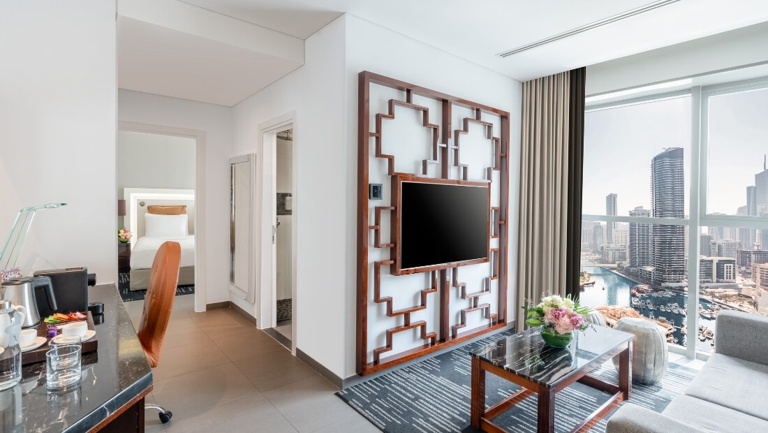 Отдыхали в The First Collection Dubai Marina - превзошел все наши ожидания!!! Оказался уютным, сервис, кухня, месторасположение, персонал, стиль отеля - все было просто идеально!!! Номер на 20 этаже с панорамным видом на набережную Дубай Марина. Вид из окна отеля на бухту Марина-это что-то необыкновенно красивое!!!!! Прилетели в 10.00 утра зарегистрировались на ресепшн, нам было проще дочь владеет английским языком (русскоговорящий персонал имеется). Оставили чемоданы, свой телефон для того чтобы позвонили когда будет готов номер и пошли сразу на осмотреть окрестности. Справа от отеля находится кафе, забежали, нас сразу отправили на второй этаж, так как женщинам на первый этаж запрещено. Это нисколько не смутило, все таки мусульманская страна и мы были к этому готовы. Поели недорого, но еда островата для нас. Только поели и нам позвонили, что номер готов, это было в 12.00 ч., так что заселяют раньше 14.00 ч., улучшили номер без каких либо доплат, заплатили только туристический сбор.
